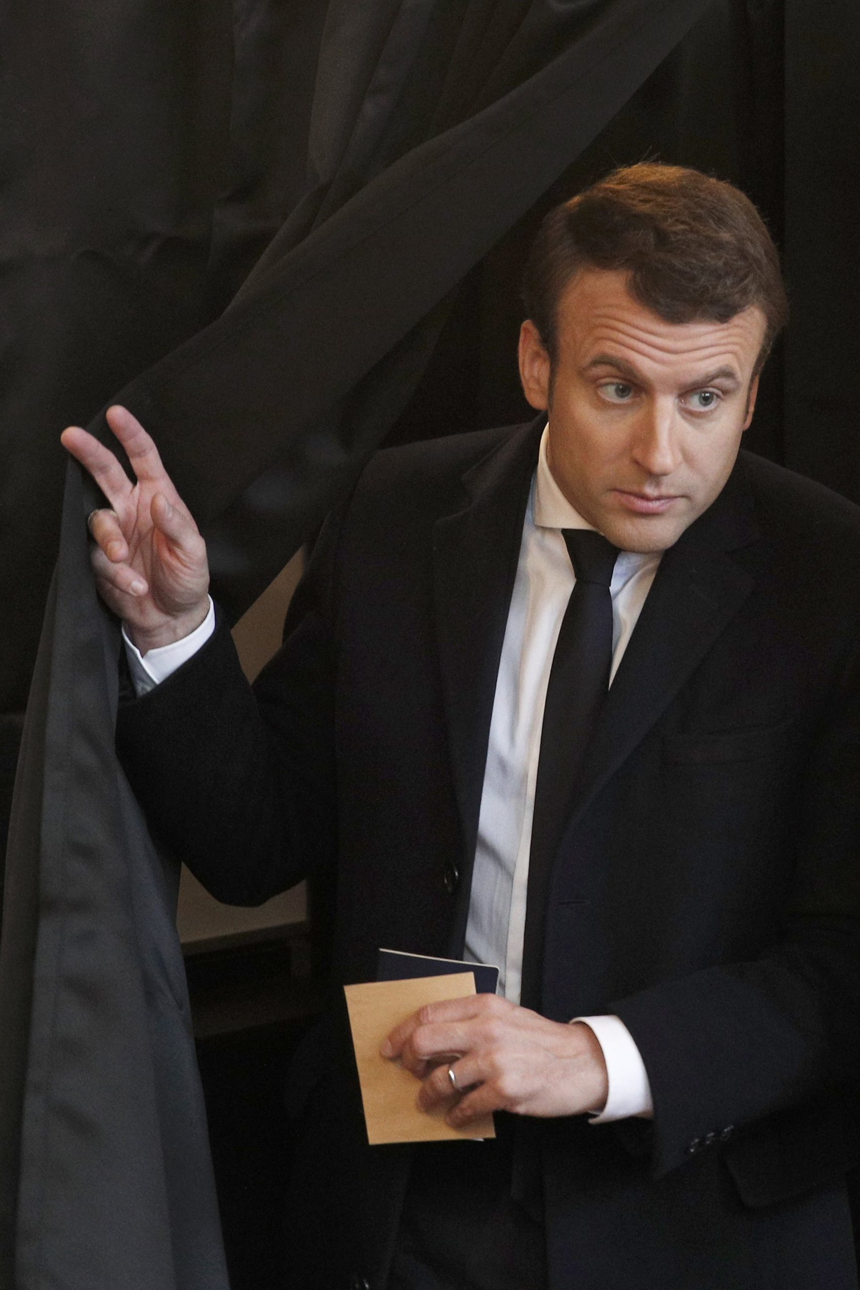 Ο κεντρώος υποψήφιος για την προεδρία της Γαλλίας Εμανουέλ Μακρόν άσκησε το εκλογικό του δικαίωμα στο δημαρχείο του Τουκέ.