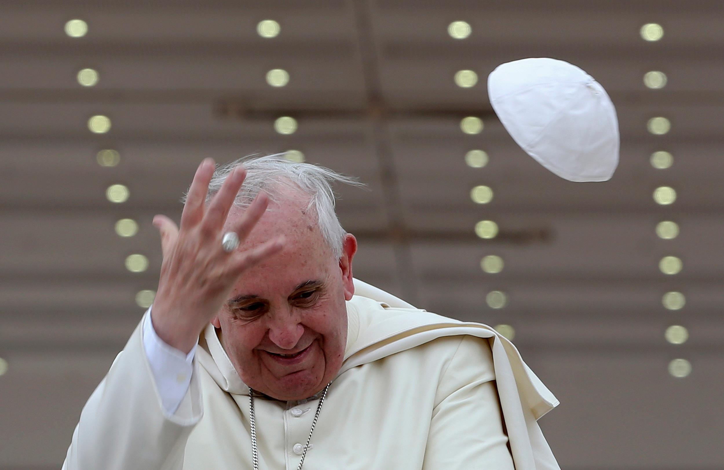 Δεν είναι όμως η πρώτη φορά που ο Πάπας Φραγκίσκος χάνει το καπελάκι του.