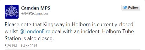 Οι αρχές “έκλεισαν” τη λεωφόρο Kingsway και στα δυο ρεύματα ενώ κλειστός παρέμεινε και ο σταθμός του μετρό στο Holborn.