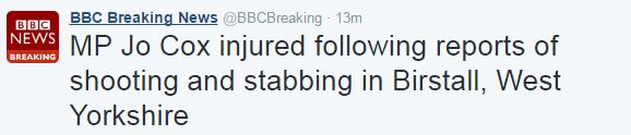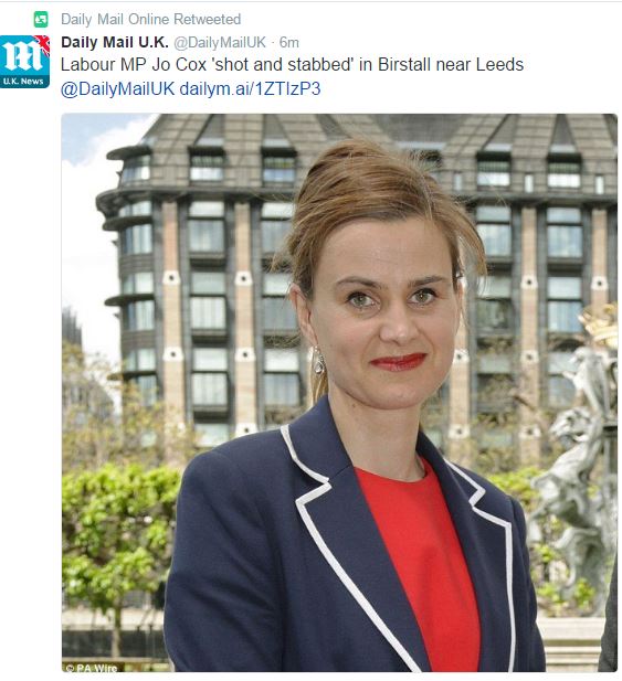 Όπως μεταδίδουν τα Βρετανικά ΜΜΕ πριν από λίγο άγνωστοι πυροβόλησαν και μαχαίρωσαν την βουλευτή των Εργατικών Jo Cox στην περιοχή Birstall κοντά στο Leeds.