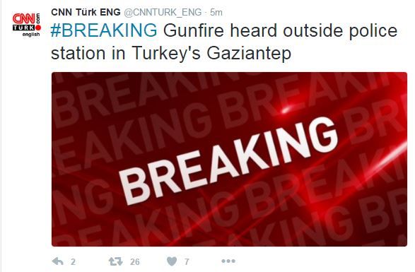 Πυροβολισμοί σημειώθηκαν έξω από αστυνομικό τμήμα στην πόλη Γκαζιαντέπ της νοτιοανατολικής Τουρκίας, όπως μετέδωσε το CNN Turk.