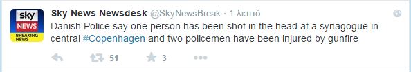 Πυροβολισμοί κοντά στη συναγωγή της Κοπεγχάγης – ΤΩΡΑ Enikos Newsroom 02:22, Κυριακή 15 Φεβρουαρίου 2015 διεθνή Πυροβολισμοί κοντά στη συναγωγή της Κοπεγχάγης σημειώθηκαν πριν από λίγα λεπτά, όπως μεταδίδουν τα Διεθνή Μέσα. ΔΑΝΙΑ ΚΟΠΕΓΧΑΓΗ ΠΥΡΟΒΟΛΙΣΜΟΙ Μοιράσου το: σχολίασε κι εσύ (0 σχόλια) Ακολουθήστε το enikos.gr στο Google News και μάθετε πρώτοι όλες τις ειδήσεις Δείτε όλες τις τελευταίες ειδήσεις από την Ελλάδα και τον Κόσμο στο enikos.gr Ειδήσεις Ροή Ειδήσεων 7 ώρες πριν Ανυποχώρητοι οι αγρότες: Δεν πάνε στο Μαξίμου, κλιμακώνουν τις κινητοποιήσεις – Ποια είναι τα αιτήματά τους 3 ώρες πριν ΗΠΑ: Ένοπλη επίθεση στο πανεπιστήμιο Μπράουν – Τουλάχιστον 2 νεκροί και 8 τραυματίες – Τραμπ: «Αυτή τη στιγμή είναι να προσευχηθούμε για τα θύματα» 6 ώρες πριν ΟΠΕΚΕΠΕ-Κρήτη: Πώς δρούσε το κύκλωμα με τις παράνομες επιδοτήσεις – Τα ΚΥΔ, οι ψευδείς αιτήσεις και τα… «βράχια της Νορμανδίας» 6 ώρες πριν Διατλαντικό ρήγμα: Οι σχέσεις ΗΠΑ – Ευρώπης επιδεινώνονται λόγω του νέου δόγματος Τραμπ και της πίεσης που ασκεί στην Ουκρανία 8 ώρες πριν Διπλό φονικό στη Φοινικούντα: Δύο νέα πρόσωπα στο «κάδρο» των ερευνών – Οι αντιφάσεις στις καταθέσεις του ανιψιού 4 λεπτά πριν Οπτική ψευδαίσθηση: Μόνο αν έχετε παρατηρητικότητα ντετέκτιβ, θα βρείτε τον αριθμό «6» σε 5 δευτερόλεπτα 20 λεπτά πριν Σπλαχνικό λίπος: Γιατρός του Χάρβαρντ αποκαλύπτει 7 τροφές που βοηθούν στη μείωσή του με φυσικό τρόπο 50 λεπτά πριν Τα ζώδια σήμερα, Κυριακή 14 Δεκεμβρίου: Παρθένοι, αφιερώστε χρόνο για να καταλάβετε καλύτερα τα συναισθήματα 7 ώρες πριν Εκπληκτική ανακάλυψη σε αρχαία ελληνική πόλη: Βρέθηκε γυναικείο κεφάλι αγάλματος και οι αρχαιολόγοι εκτιμούν ότι μπορεί να συνδέεται με τη θεά Εστία 4 λεπτά πριν Οπτική ψευδαίσθηση: Μόνο αν έχετε παρατηρητικότητα ντετέκτιβ, θα βρείτε τον αριθμό «6» σε 5 δευτερόλεπτα 12 λεπτά πριν Έξι κυανόκρανοι νεκροί σε επίθεση στο Σουδάν – Καταδίκη από τον ΟΗΕ 15 λεπτά πριν Σήμερα με τη Realnews: Δωροεπιταγή 10€ 20 λεπτά πριν Σπλαχνικό λίπος: Γιατρός του Χάρβαρντ αποκαλύπτει 7 τροφές που βοηθούν στη μείωσή του με φυσικό τρόπο 26 λεπτά πριν Σαν σήμερα 14 Δεκεμβρίου: Τα σημαντικότερα γεγονότα της ημέρας ENIKOS NETWORK «Με αυτόν τον τρόπο κατάφερα να απογειώσω τη σεξουαλική μου ζωή» – Τι αποκαλύπτει 40χρονη Πείτε «τέλος» στην ακμή χωρίς φάρμακα – Ειδικός αποκαλύπτει αποτελεσματική ρουτίνα περιποίησης Νέα εποχή για την Εγνατία Οδό – Τι αλλάζει με επενδύσεις 1,8 δισ. ευρώ Στάση εργασίας στα λεωφορεία την Τετάρτη 17 Δεκεμβρίου – Κανονικά τα περιαστικά δρομολόγια Σύγχρονος Νοστράδαμος: Προειδοποιεί για «μεγάλο γεγονός» τους επόμενους μήνες που θα συγκλονίσει τη Βρετανία και τον κόσμο Τεστ παρατηρητικότητας: Μπορείτε να βρείτε τις 3 διαφορές στις εικόνες με έναν πιγκουίνο σε 14 δευτερόλεπτα περισσότερα 06:08 , Κυριακή 14 Δεκεμβρίου 2025 Έξι κυανόκρανοι νεκροί σε επίθεση στο Σουδάν – Καταδίκη από τον ΟΗΕ Έξι κυανόκρανοι από το Μπαγκλαντές έχασαν τη ζωή τους το Σάββατο (13/12), σε επίθεση με drones... 05:10 , Κυριακή 14 Δεκεμβρίου 2025 Τυνησία: Συγκρούσεις αστυνομικών με διαδηλωτές στην Καϊρουάν Συγκρούσεις μεταξύ αστυνομικών και νεαρών διαδηλωτών ξέσπασαν για δεύτερη διαδοχική νύχτα στην... 04:10 , Κυριακή 14 Δεκεμβρίου 2025 Βολιβία: Τουλάχιστον τρεις νεκροί εξαιτίας πλημμυρών Τουλάχιστον τρεις νεκροί και οκτώ αγνοούμενοι είναι ο μέχρι στιγμής απολογισμός πλημμυρών στην... 03:40 , Κυριακή 14 Δεκεμβρίου 2025 Γερμανία: Πέντε συλλήψε