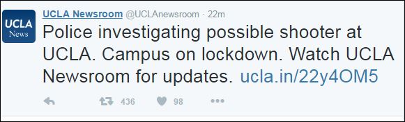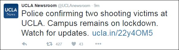 Συναγερμός έχει σημάνει στις φοιτητικές εγκαταστάσεις του πανεπιστημίου UCLA του Λος Άντζελες έπειτα από πυροβολισμούς, ενώ οι πρώτες πληφορίες κάνουν λόγο για δύο τραυματίες.