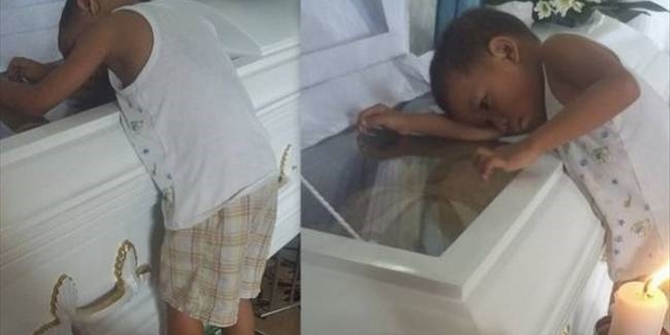 Μία συγγενής του μικρού αγοριού από τις Φιλιππίνες, απαθανάτισε τη στιγμή και δημοσίευσε τις φωτογραφίες στον προσωπικό της λογαριασμό στο Facebook γράφοντας: «Τι μπορείς να πεις σε ένα τόσο μικρό αγόρι που σε ρωτάει “Γιατί η μαμά δεν κοιμάται πια δίπλα μου;”… μου ραγίζει την καρδιά… Τράβηξε μια καρέκλα μόνος του, σκαρφάλωσε στο φέρετρο και αγκάλιασε για τελευταία φορά τη μαμά του».