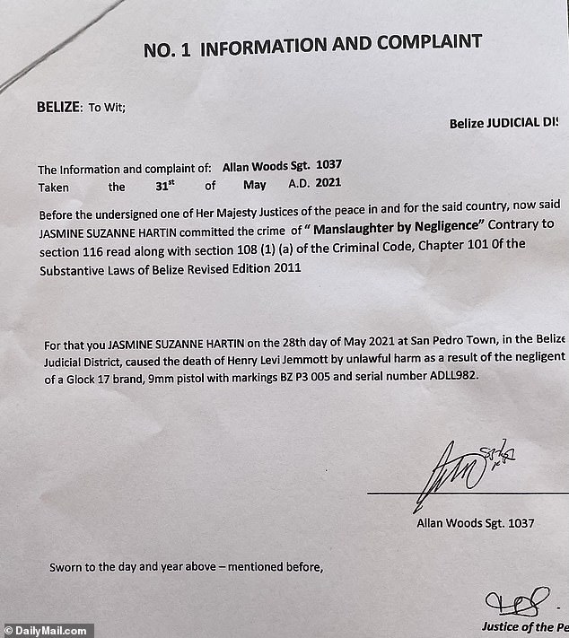 Σύμφωνα με την Daily Mail, η 32χρονη Γιασμίν Χάρτιν, Καναδή σοσιαλιτέ και διευθύντρια πολυτελούς resort, βρέθηκε με αίμα στα χέρια μετά τον θανάσιμο τραυματισμό του κορυφαίου αστυνομικού με το όπλο του, όπως αναφέρεται στην εγκληματική αναφορά.