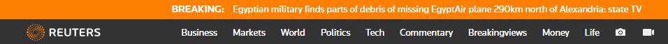 Συντρίμμια του αεροσκάφους της EgyptAir εντοπίστηκαν από τον Αιγυπτιακό στρατό, 290 χιλιόμετρα βόρεια της Αλεξάνδρειας, σύμφωνα με το Reuters.