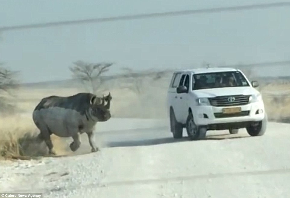 Στο βίντεο που ακολουθεί βλέπουμε το ρινόκερο να επιτίθεται με μανία στο όχημα, ενώ οι επιβάτες του βρίσκονται παγιδευμένοι μέσα στο αυτοκίνητο.