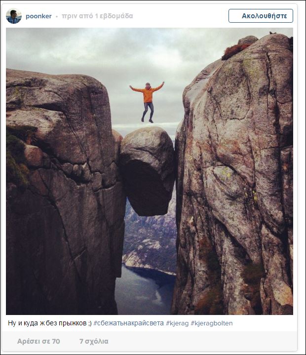 Απ’ ό,τι φαίνεται στις φωτογραφίες δεν υπάρχει γωνιά στον πλανήτη αρκετά… δυσπρόσιτη για τους χρήστες του Instagram. Οι λάτρεις του εν λόγω μέσου κοινωνικής δικτύωσης –κατά κύριο λόγο νεαρά άτομα- αψηφούν τους κινδύνους, ρισκάροντας πολλές φορές ακόμα και τη ζωή τους, για λίγα περισσότερα likes…