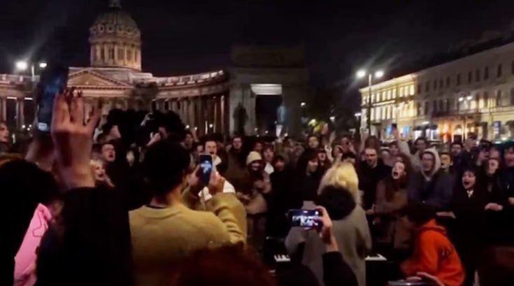 Μια δημόσια εκδήλωση αμφισβήτησης του καθεστώτος Πούτιν σημειώθηκε στην Αγία Πετρούπολη, όπου εκατοντάδες πολίτες συγκεντρώθηκαν για να τραγουδήσουν αντικαθεστωτικούς στίχους ενάντια στον Ρώσο Πρόεδρο, προκαλώντας την επέμβαση της αστυνομίας και τη σύλληψη μιας 18χρονης τραγουδίστριας.