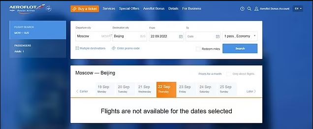 Όλα τα αεροπορικά εισιτήρια για χώρες όπου οι Ρώσοι δεν θα χρειάζονταν βίζα, συμπεριλαμβανομένης της Τουρκίας, της Αρμενίας και της Γεωργίας, έχουν εξαντληθεί, ενώ ο εθνικός αερομεταφορέας Aeroflot δεν εμφανίζει εισιτήρια για σήμερα.