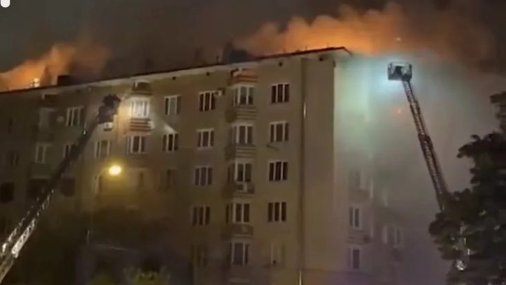 Περίπου 150 πυροσβέστες, με τη συνδρομή ελικοπτέρου, έδωσαν μάχη για να θέσουν υπό έλεγχο μια μεγάλη φωτιά που ξέσπασε σε συγκρότημα κατοικιών στη Μόσχα.