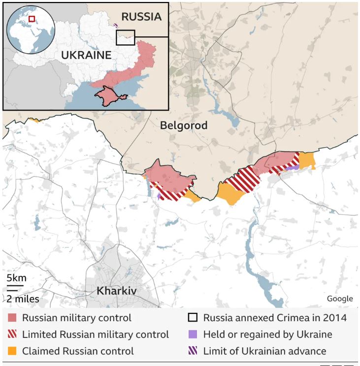 Αντίθετα η ουκρανική προέλαση στο Κουρσκ και στο Μπελγκορόντ είναι εντυπωσιακή, σε επικοινωνιακό επίπεδο τουλάχιστον κι ας μην είναι τόσο μεγάλη σε βάθος και έκταση.