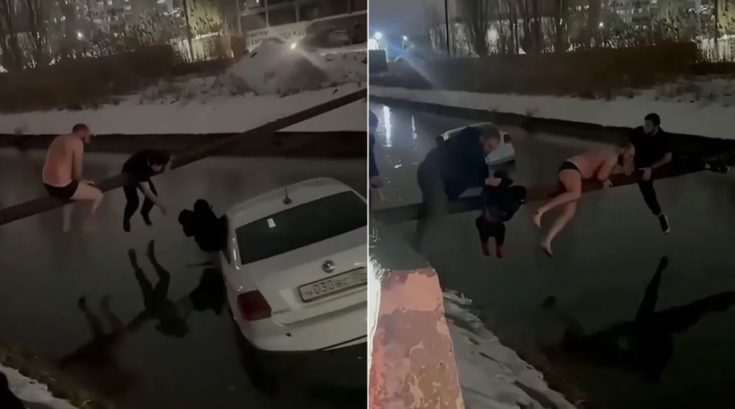 Στιγμές ηρωισμού εκτυλίχθηκαν στo Νταγκεστάν της Ρωσίας, όταν κάτοικοι κατάφεραν να σώσουν ένα μικρό αγόρι που είχε εγκλωβιστεί σε ταξί, το οποίο ξέφυγε από τον δρόμο και έπεσε σε ένα κανάλι.