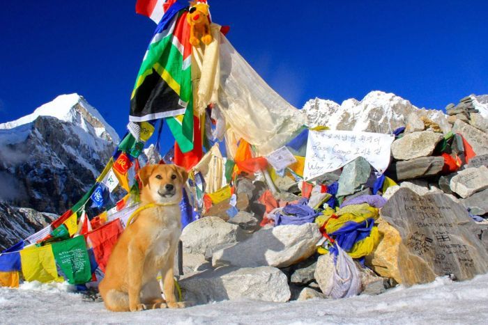 Ο πρώτος σκύλος που κατέκτησε το Έβερεστ έγινε ο Ρούπι, ένα εγκαταλελειμμένο κουταβάκι που σώθηκε από χωματερή στην Ινδία.