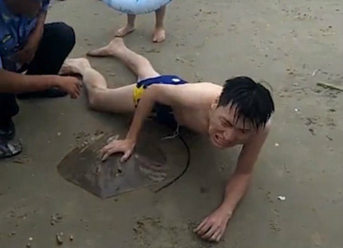 Το ανατριχιαστικό περιστατικό συνέβη στην πόλη Σανιά, στην επαρχία Χαϊνάν της Κίνας. Στις εικόνες που κατέγραψε ερασιτέχνης εικονολήπτης, διακρίνεται ο κολυμβητής να σφαδάζει από τους πόνους, ενώ στο πλευρό του έχουν σπεύσει διασώστες.