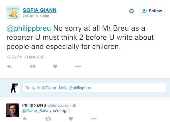 Μετά τον σάλο που προκλήθηκε από την ανάρτηση του στο twitter για τα παιδιά των προσφύγων στην Ειδομένη, ο Γερμανός φωτορεπόρτερ Philipp Breu, φαίνεται μετανιωμένος για όσα έγραψε.