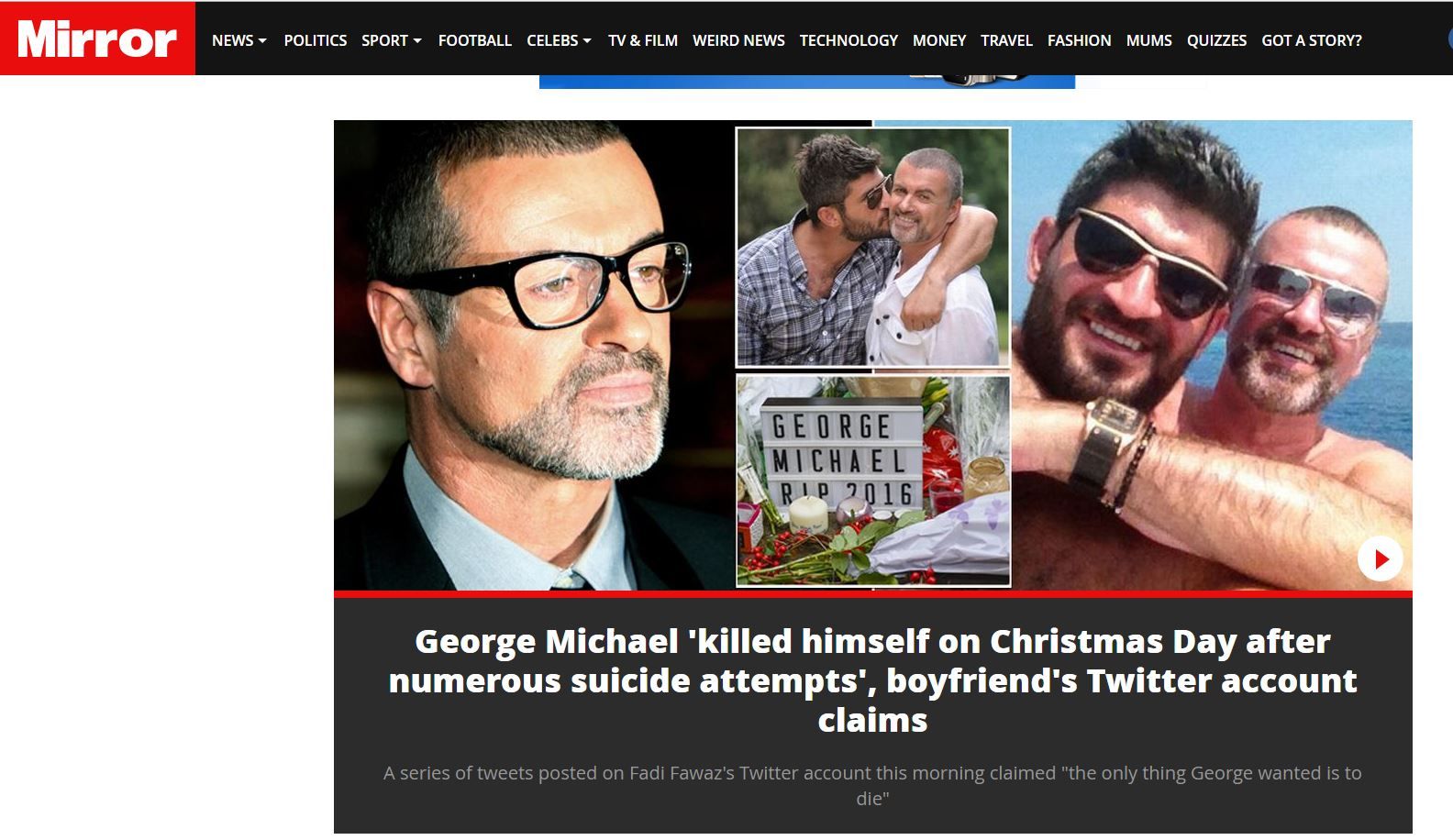 Σάλο έχει προκαλέσει η δήλωση του συντρόφου του Τζορτζ Μάικλ, ότι ο διάσημος τραγουδιστής αυτοκτόνησε, ενώ αποκάλυψε επίσης, ότι είχε κάνει πολλές απόπειρες στο παρελθόν.