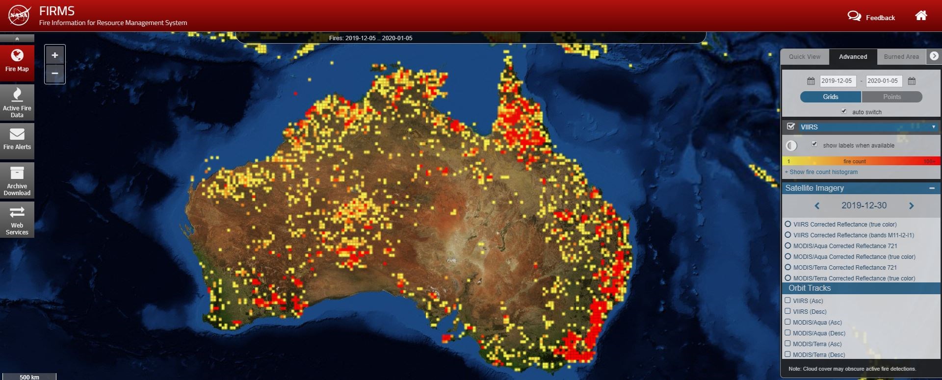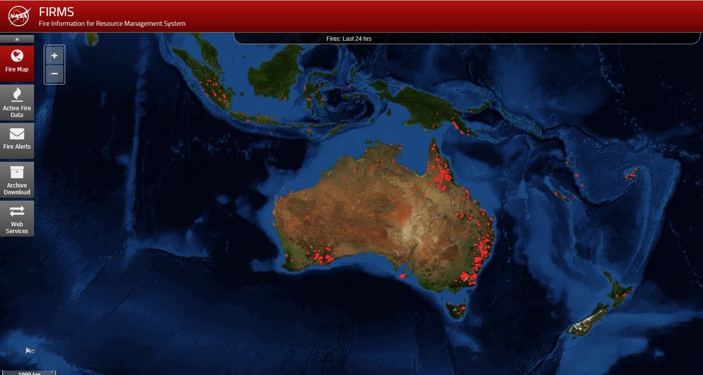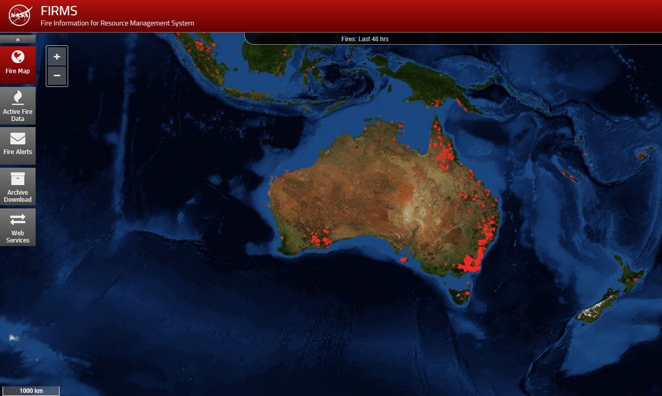 Η ίδια υπηρεσία παρέχει πληροφορίες σχετικά με τις πυρκαγιές που μαίνονται στην Αυστραλία και για τις τελευταίες 24 και 48 ώρες.
