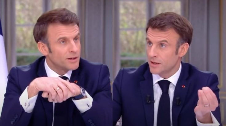 Στο βίντεο της συνέντευξης, ο Γάλλος πρόεδρος φαίνεται να απομακρύνει το ρολόι, καταβάλλοντας μια προσπάθεια να μην φανεί τι κάνει. Αλλά ο φακός τα δείχνει όλα.