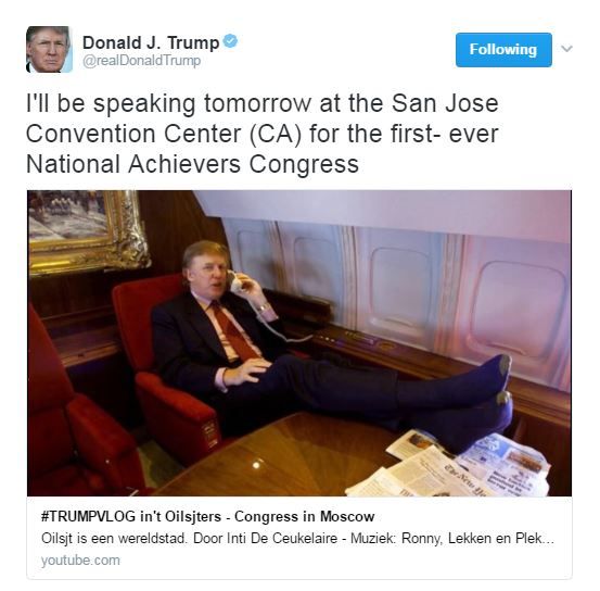 Ένας 21χρονος Βέλγος κατάφερε να δημοσιοποιήσει, μέσω του επίσημου λογαριασμού Twitter του Ντόναλντ Τραμπ, ένα τραγούδι που εμφανίζει τον Πρόεδρο των ΗΠΑ να εκθειάζει τα κάλλη των εκδιδομένων Ρωσίδων.