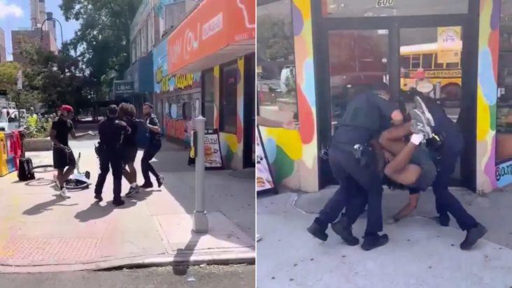 Σύμφωνα με το βίντεο που αναρτήθηκε στο Instagram από τον λογαριασμό nyshittynews, ο 18χρονος ανέβηκε στο πεζοδρόμιο και αμέσως δύο αστυνομικοί άρπαξαν τα χέρια του, ενώ ένας τρίτος τον έριξε με δύναμη στο έδαφος.