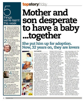 Σάλος έχει ξεσπάσει στη Βρετανία εξαιτίας της σεξουαλικής σχέσης μιας μάνας με τον γιο της και της πρόθεσής τους να αποκτήσουν παιδί. Μια μητέρα συναντήθηκε, ύστερα από 30χρονια, με τον γιο της, τον οποίον είχε δώσει για υιοθεσία και τώρα οι δυο τους δηλώνουν ερωτευμένοι και πως προσπαθούν να κάνουν παιδί.