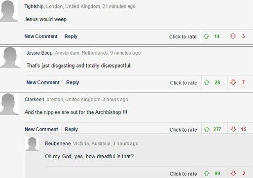 Μπορεί η 41χρονη να εμφανίζεται ντυμένη σεμνά με μια maxi λευκή φούστα και ένα γκρι πουλόβερ, όμως, φαίνεται πως ξέχασε να φορέσει σουτιέν. Η εμφάνισή της αυτή, όπως ήταν φυσικό προκάλεσε αντιδράσεις στα μέσα κοινωνικής δικτύωσης, καθώς δεν αρμόζει σε μία επίσημη συνάντηση με έναν Αρχιεπίσκοπο.