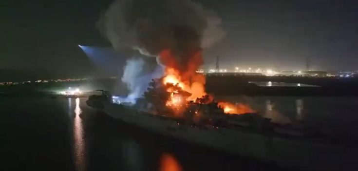 A fire broke out during the dismantling and renovation of the retired Soviet aircraft carrier “Minsk,” which was docked in Nantong, Jiangsu Province, around 4pm on August 16. pic.twitter.com/cGfMmgiki9
