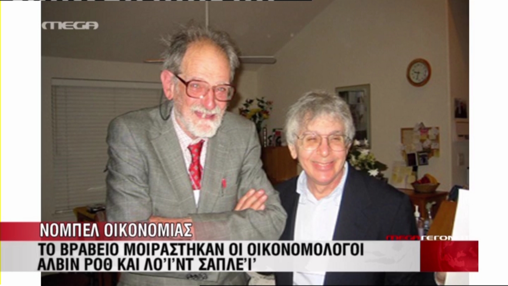 Οι οικονομολόγοι Άλβιν Ροθ και Λόιντ Σάπλεϊ είναι οι νέοι κάτοχοι του Νόμπελ Οικονομίας 2012.