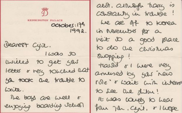 Τα έξι σημειώματα αυτά ανήκαν στη συλλογή του Σίριλ Ντίκμαν, ο οποίος ήταν αυλάρχης του Μπάκιγχαμ επί μισό αιώνα. Σχεδόν σε όλα η πριγκίπισσα αναφερόταν με τρυφερότητα στα παιδιά της, τους πρίγκιπες Ουίλιαμ και Χάρι.