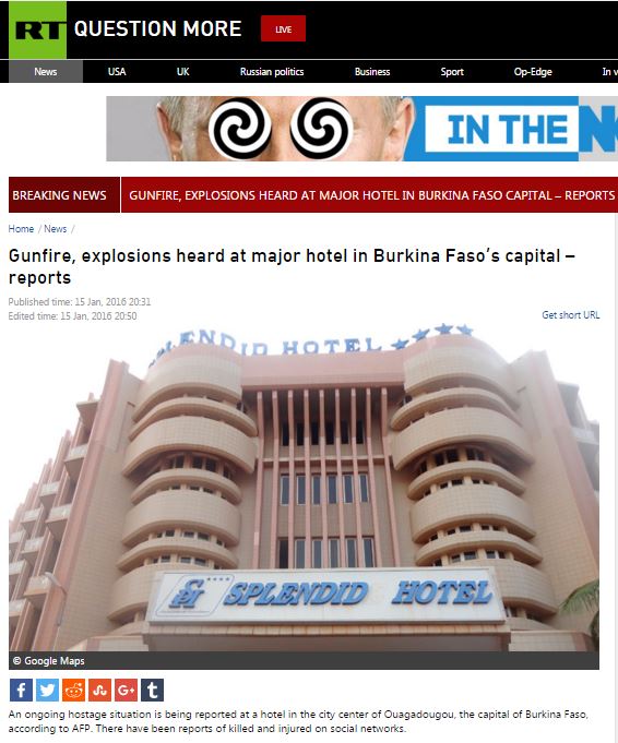 Σε εξέλιξη βρίσκεται ομηρία στο ξενοδοχείο Splendid στην πρωτεύουσα της Μπουρκίνα Φάσο, Ουαγκαντούγκου, σύμφωνα με το RT.