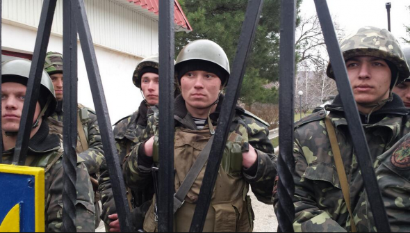 Στην περικυκλωμένη από Ρώσους βάση του ουκρανικού στρατού Perevalne της Κριμαίας, οι Ουκρανοί έφεδροι παραμένουν σε κατάσταση… ομηρίας. Νεαροί, ανήμποροι να κάνουν οτιδήποτε, αναμένουν εντολές από την κυβέρνηση του Κιέβου. Στα πρόσωπά τους φαίνεται η αγωνία. Φορούν κράνη και αλεξίσφαιρα γιλέκα αλλά είναι όλοι τους νεαροί. Γύρω του οι speznast, εκπαιδευμένοι κομάντο και τα πυροβόλα που τους σημαδεύουν. Οι συγκλονιστικές εικόνες είναι από τον φακό του James Mates, παραγωγού του ITV News.