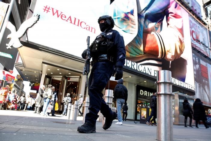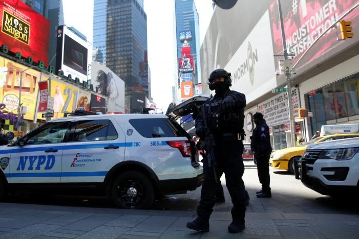 Πάνοπλοι άνδρες της αντιτρομοκρατικής υπηρεσία, με ειδικά εκπαιδευμένους σκύλους περιπολούν γύρω από το δημαρχείο της νέας Υόρκης, στον πολυσύχναστο κεντρικό σιδηροδρομικό σταθμό και σε άλλα κομβικά σημεία, πραγματοποιώντας ελέγχους σε τυχόν υπόπτους.