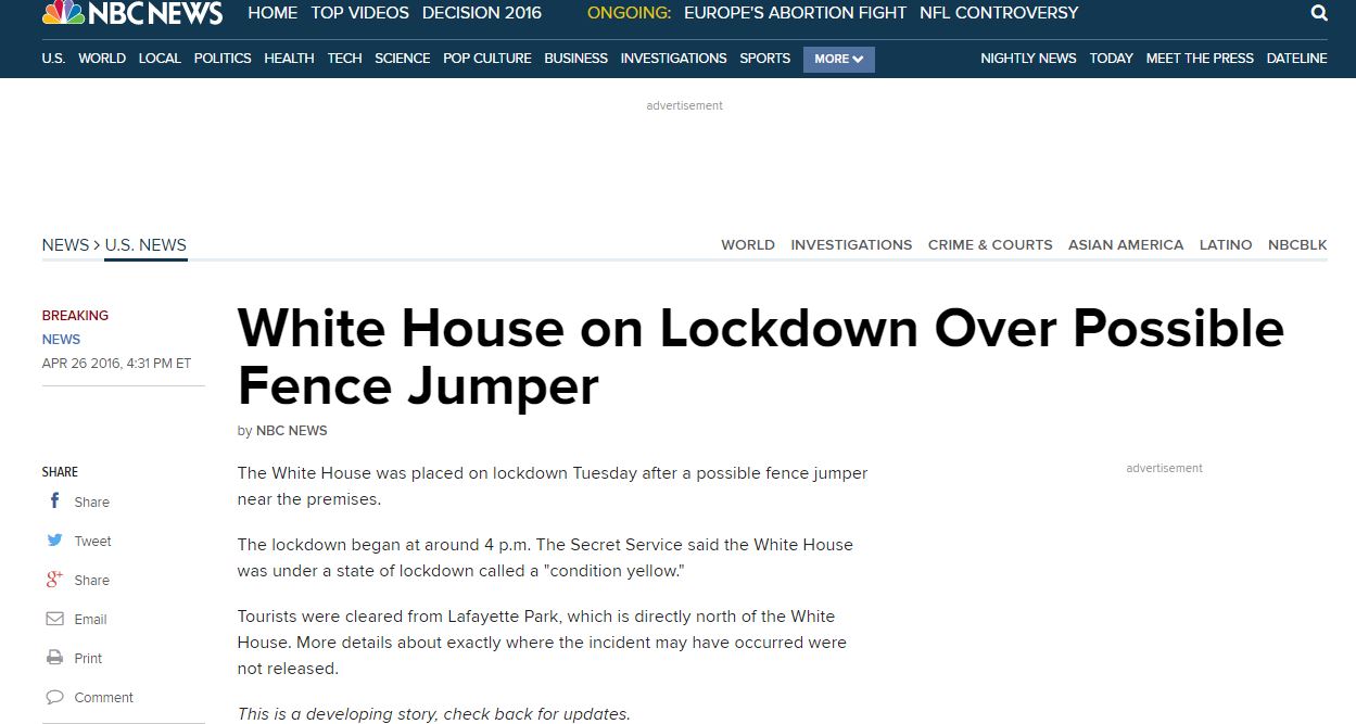 Όπως μεταδίδει το NBC, στο κτίριο του Λευκού Οίκου, επικρατεί πανικός καθώς ένας άγνωστος, κατάφερε να περάσει με άλμα τον φράχτη της προεδρικής κατοικίας και αυτή τη στιγμή βρίσκεται εντός του Λευκού Οίκου.