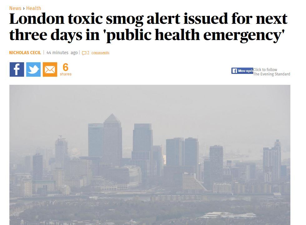 Ο δήμαρχος του Λονδίνου δήλωσε ότι «η ατμοσφαιρική ρύπανση στο Λονδίνο αποτελεί απειλή για την υγεία. Θα συνεχίσουμε να χρησιμοποιούμε όσα τεχνολογικά μέσα διαθέτουμε για να ενημερώνουμε του κατοίκους για τα επίπεδα ατμοσφαιρικής ρύπανσης».