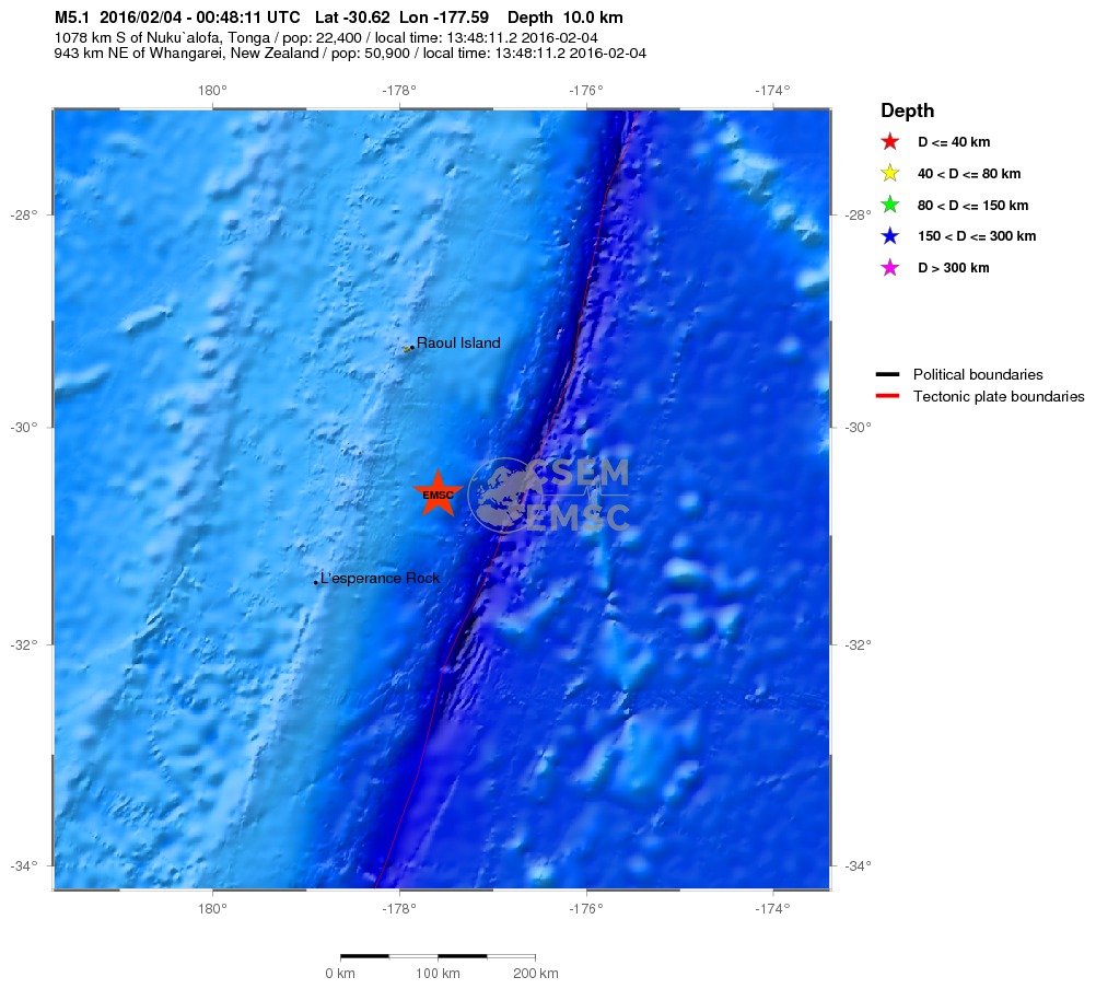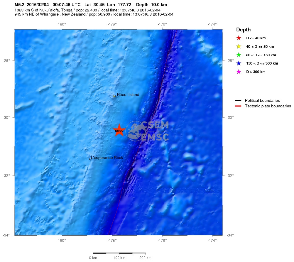 Συγκεκριμένα, από τις 2.00 τα ξημερώματα ώρα Ελλάδας έως τις 3.10 σημειώθηκαν δυο σεισμοί 5,2 και 5,1 βαθμών της κλίμακας Ρίχτερ στα νησιά Κερμάντεκ με εστιακό βάθος 10 χιλιομέτρων.