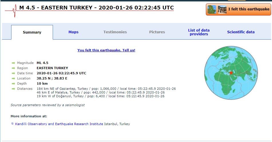 Σεισμός 4,5 Ρίχτερ στην Τουρκία Διονύσης Νίκκας 04:53, Κυριακή 26 Ιανουαρίου 2020 διεθνή Σεισμός 4,5 Ρίχτερ σημειώθηκε στις 04:22 τα ξημερώματα της Κυριακής 184 χιλιόμετρα βορειοανατολικά του Γκαζιαντεπ και 46 νοτιοανατολικά της Μαλάτειας. Ο σεισμός έγινε αντιληπτός σε όλη την περιοχή καθώς είχε εστιακό βάθος 10 χιλιόμετρα. ΣΕΙΣΜΟΣ ΤΟΥΡΚΙΑ Μοιράσου το: σχολίασε κι εσύ (0 σχόλια) Ακολουθήστε το enikos.gr στο Google News και μάθετε πρώτοι όλες τις ειδήσεις Δείτε όλες τις τελευταίες ειδήσεις από την Ελλάδα και τον Κόσμο στο enikos.gr Ειδήσεις Ροή Ειδήσεων 8 ώρες πριν Πόλεμος Ευρώπης – Ρωσίας: Ποιες χώρες ανησυχούν – Μέχρι πού φτάνουν οι αυτοκρατορικές φιλοδοξίες του Πούτιν; 10 ώρες πριν Συνελήφθη ο Άρης Μουγκοπέτρος για ενδοοικογενειακή απειλή – «Στερείται τα παιδιά του χωρίς κανέναν λόγο» λέει ο δικηγόρος του 8 ώρες πριν Προκαλεί το τουρκικό Υπουργείο Άμυνας: Η προσέγγιση της Ελλάδας ευθύνεται για τις παραβιάσεις στο Αιγαίο 8 ώρες πριν Θεσσαλονίκη: Βίντεο με τους δράστες να πλησιάζουν το υποκατάστημα τράπεζας εξετάζουν οι Αρχές – Πού επικεντρώνονται οι έρευνες 8 ώρες πριν Αγρότες: Δεν αποκλείουν κλιμάκωση των κινητοποιήσεων μετά τις γιορτές – Γιορτάζουν τα Χριστούγεννα στα μπλόκα με μουσική και ψησταριές 8 ώρες πριν Ύπνος: Το μοτίβο που μπορεί να προμηνύει κίνδυνο για τη νόσο Αλτσχάιμερ, σύμφωνα με μελέτη 9 ώρες πριν Αριθμολογία: Χρονιά μεγάλων αλλαγών το 2026 – «Ανοίγουν διάπλατα οι πόρτες για νέα ξεκινήματα» 10 ώρες πριν Παπούτσια: Το οικονομικό προϊόν από το μπάνιο που εξαφανίζει τις δυσάρεστες οσμές 11 ώρες πριν Γλώσσα του σώματος: 11 σημάδια που δείχνουν ότι ένα ζευγάρι έχει απομακρυνθεί συναισθηματικά 12 λεπτά πριν Οπτική ψευδαίσθηση: Μόνο αν έχεις αετίσια ματιά θα βρεις την γάτα σε 8 δευτερόλεπτα 27 λεπτά πριν Φούσκωμα: 8 συμβουλές για να αποφύγετε τα πεπτικά προβλήματα κατά την εορταστική περίοδο 35 λεπτά πριν Σαν σήμερα 26 Δεκεμβρίου: Τα σημαντικότερα γεγονότα της ημέρας 47 λεπτά πριν Κλειστά τα θέατρα το Σάββατο 27 Δεκεμβρίου, λόγω απεργίας ηθοποιών και μουσικών 58 λεπτά πριν Τα ζώδια σήμερα, Παρασκευή 26 Δεκεμβρίου: Τοξότες, η σκέψη σας στρέφεται στην συναισθηματική σταθερότητα ENIKOS NETWORK Ειδικός στο σεξ αποκαλύπτει τα πέντε λάθη που κάνουν τα ζευγάρια τις γιορτές – Κάντε το τεστ για να δείτε αν κινδυνεύετε Πώς θα έμοιαζαν οι πιο όμορφες γυναίκες του Χόλιγουντ χωρίς αισθητικές παρεμβάσεις (video) Αττική Οδός: Νέες τιμές στα διόδια από το 2026 – Πόσο θα πληρώνουν ΙΧ και φορτηγά Περιφέρεια Αττικής: Πώς επενδύει στα Χριστούγεννα και ενισχύει το τουριστικό της αποτύπωμα Ο Google Assistant θα παραμείνει λίγο περισσότερο για ορισμένους χρήστες Android Τεστ προσωπικότητας: Το βάζο που θα επιλέξετε αποκαλύπτει πώς λύνετε προβλήματα στη ζωή σας περισσότερα 04:50 , Παρασκευή 26 Δεκεμβρίου 2025 Γιουν Σουκ Γιολ: Ο πρώην πρόεδρος της Νότιας Κορέας κινδυνεύει με φυλάκιση 10 ετών Ο ειδικός εισαγγελέας της Νότιας Κορέας ζήτησε ποινή φυλάκισης 10 ετών για τον πρώην πρόεδρο, ... 04:26 , Παρασκευή 26 Δεκεμβρίου 2025 Μεξικό: Λεωφορείο έπεσε σε χαράδρα – Τουλάχιστον 10 νεκροί και 32 τραυματίες Τροχαίο δυστύχημα με τουλάχιστον δέκα νεκρούς και 32 τραυματίες σημειώθηκε την Πέμπτη, στο Μεξ... 03:44 , Παρασκευή 26 Δεκεμβρίου 2025 Συνεργασία Νιγηρίας – ΗΠΑ σε θέματα ασφάλειας μετά τα αεροπορικά πλήγματα κατά τρομοκρατών Το υπουργείο Εξωτερικών της Νιγηρίας επιβεβαίωσε την Παρασκευή ότι ακριβή αμερικανικά αεροπορι... 01:5