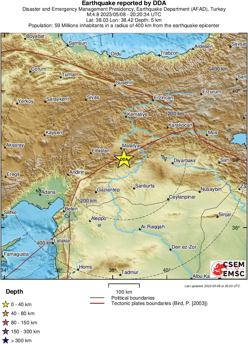 Σεισμός 4,8 βαθμών της κλίμακας Ρίχτερ σημειώθηκε πριν από λίγα λεπτά στην Τουρκία.