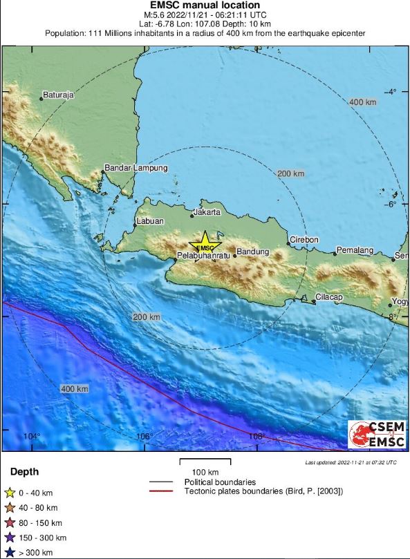 Το επίκεντρο της σεισμικής δόνησης ήταν στη δυτική Ιάβα ενώ το εστιακό βάθος του σεισμού ήταν 10 χιλιόμετρα.