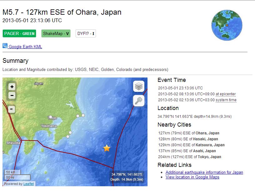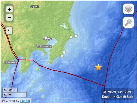 Το επίκεντρο του σεισμού εντοπίστηκε 204 χλμ. νοτιοανατολικά του Τόκιο και 127 χλμ. της πόλης Οχάρα.