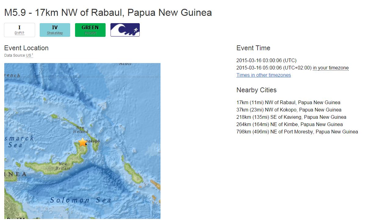 Το επίκεντρο του σεισμού εντοπίστηκε 17 χιλιόμετρα βορειοδυτικά της πόλης Ραμπούλ, που βρίσκεται στη βορειοανατολική άκρη του νησιού.