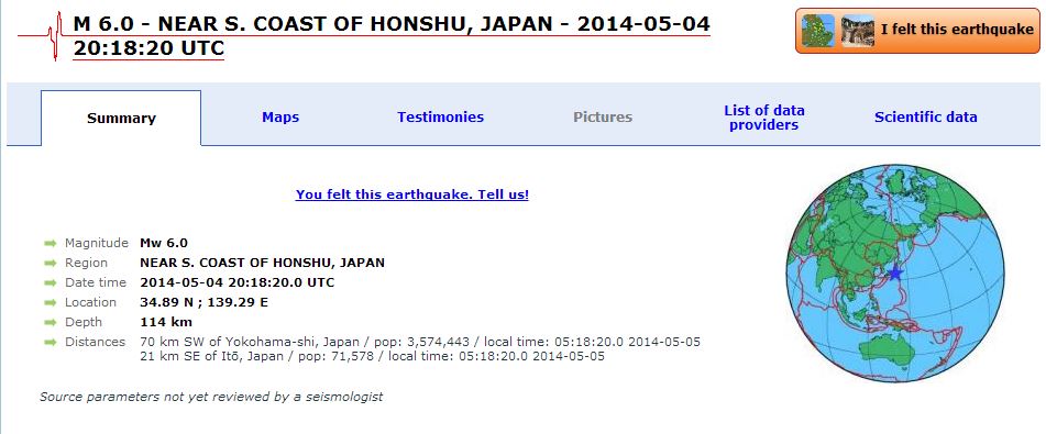 Η σεισμική δόνηση σημειώθηκε στις 01:58 τοπική ώρα (23:18 ώρα Ελλάδας) και είχε επίκεντρο το νησί Ίζου Οσίμα, ενώ το εστιακό της βάθος ήταν 160 χλμ., σύμφωνα με την ίδια πηγή.
