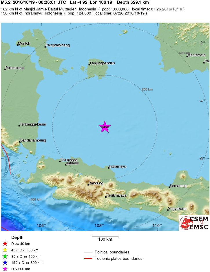 Σεισμική δόνηση μεγέθους 6,2 βαθμών της κλίμακας Ρίχτερ καταγράφηκε στις 3.36 τα ξημερώματα της Τετάρτης (ώρα Ελλάδας) στην Ινδονησία, σύμφωνα με το ευρωμεσογειακό κέντρο.