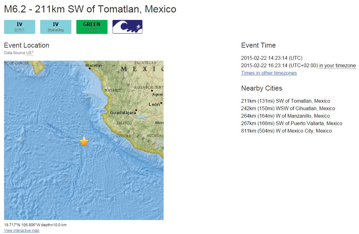 Ισχυρή σεισμική δόνηση εντάσεως 6,2 Ρίχτερ σημειώθηκε στα παράλια του Μεξικού στον Ειρηνικό στις 16:23 τα ξημερώματα (ώρα Ελλάδας), σύμφωνα με εκτίμηση του Αμερικανικού Ινστιτούτου Γεωφυσικής (USGS).