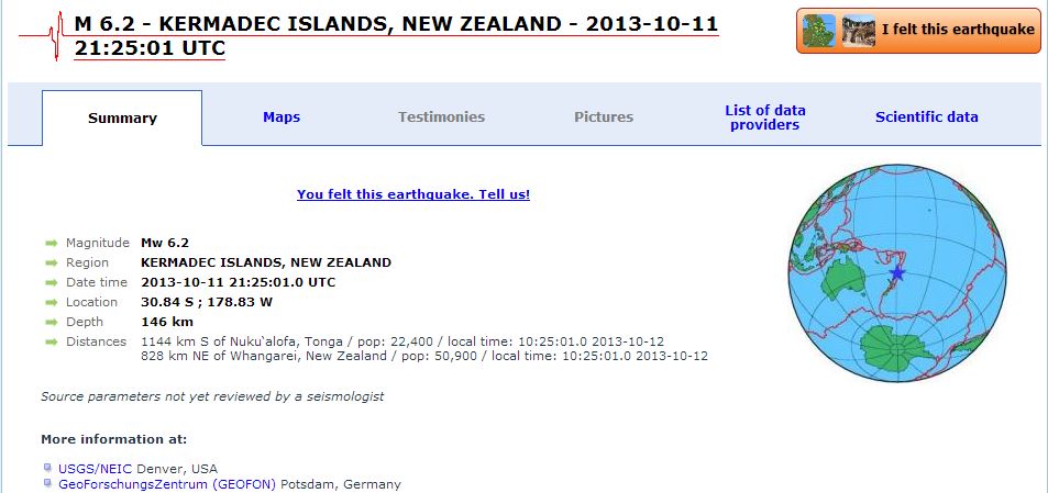 Σεισμική δόνηση 6,2 των βαθμών της κλίμακας Ρίχτερ σημειώθηκε στις 00:25, ώρα Ελλάδος, ανοικτά της Νέας Ζηλανδίας.