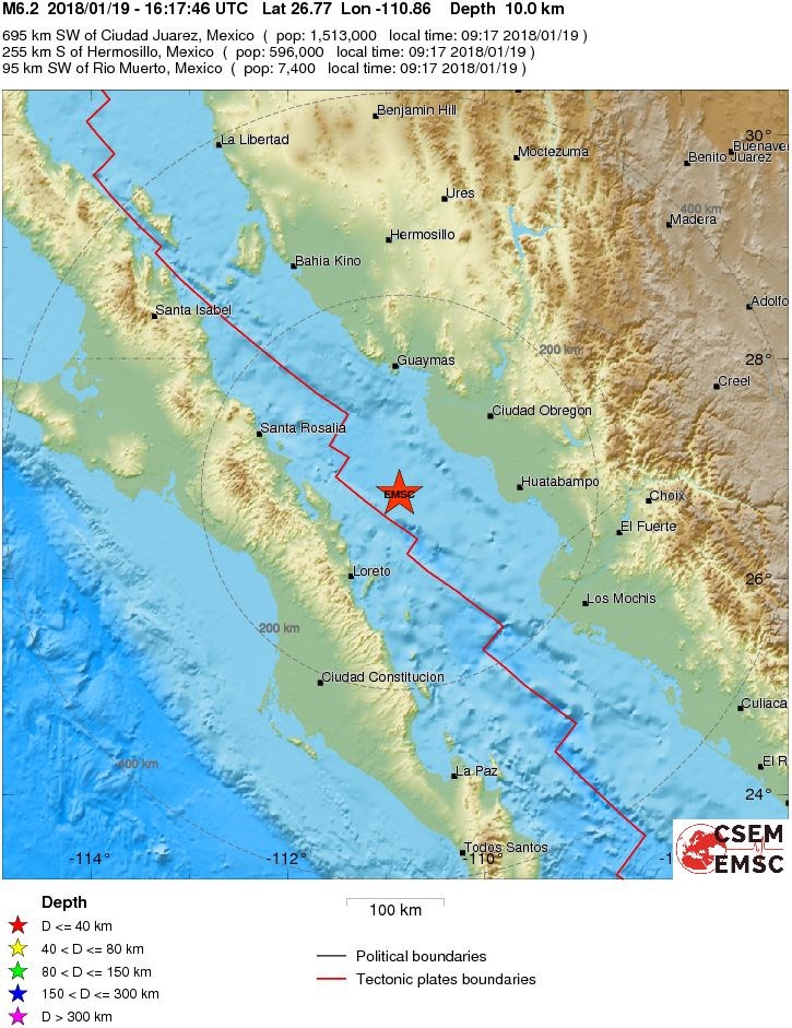 Σύμφωνα με το Αμερικανικό Γεωλογικό Ινστιτούτο, ο σεισμός ήταν μεγέθους 6,3 βαθμών της κλίμακας Ρίχτερ και σημειώθηκε ανοιχτά των ακτών του Λορέτο στην πολιτεία Μπάχα Καλιφόρνια Σουρ του Μεξικού.