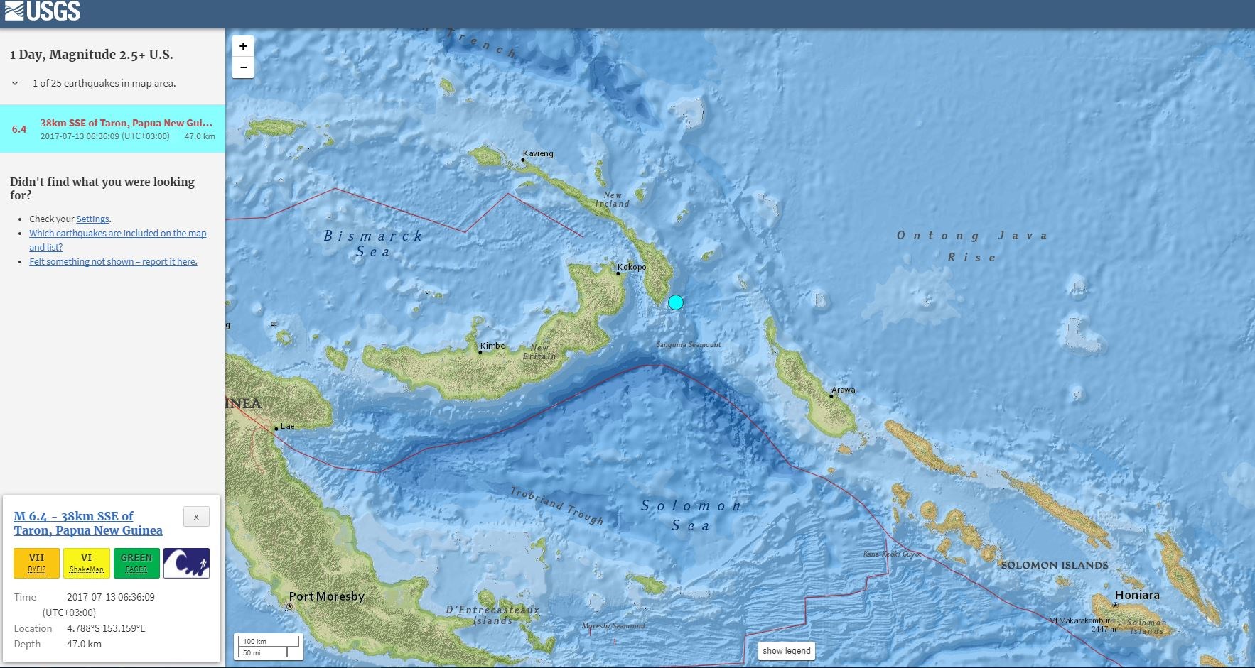 Δεν υπάρχουν άμεσες αναφορές για θύματα ή ζημιές από τον σεισμό αυτό, που είχε εστιακό βάθος 33 χιλιομέτρων σε απόσταση περίπου 128 χιλιομέτρων ανατολικά του νησιού της Νέας Βρετανίας.