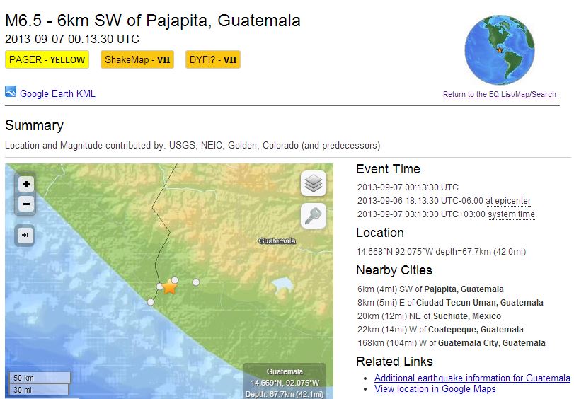 Ο σεισμός σημειώθηκε λίγο έξω από την επαρχία Παγιαπίτα στη Γουατεμάλα, σε απόσταση περίπου 14 χιλιομέτρων από τα σύνορα με το Μεξικό.