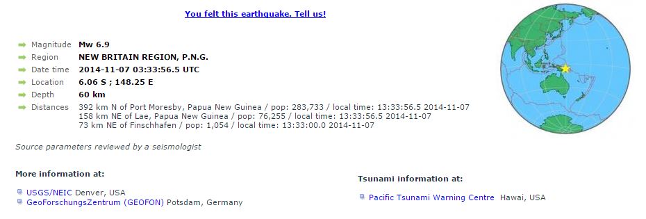 Σεισμός 6,9 Ρίχτερ στην Νέα Γουινέα