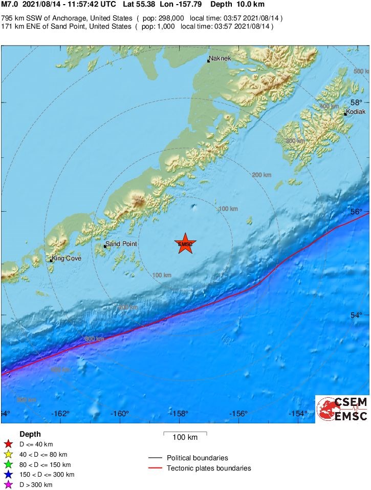 Ισχυρός σεισμός σημειώθηκε το μεσημέρι στην Αλάσκα. Σύμφωνα με την αυτόματη λύση του Ευρωμεσογειακού, η δόνηση ήταν μεγέθους 7 Ρίχτερ με εστιακό βάθος 10 χιλιόμετρων.